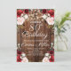 Wood Rustic Burgundy Floral Surprise 80th Birthday Invitation.