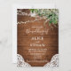 Step into a world of rustic charm with our beautifully crafted wedding invitation. Set against a backdrop of rustic wood, this design features a delicate arrangement of watercolor greenery leaves, softly lit by string lights at the top for an enchanting touch. The bottom of the card is adorned with an exquisite illustration of white lace, enhancing its vintage appeal. Inside, the harmonious combination of modern script and classic serif font elegantly unfolds your wedding details, creating an invitation that's as memorable as your special day.