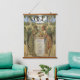 The polyester fabric displayed many wrinkles and several sharp creases throughout. At the bottom of the tapestry, I noticed a bulge in the fabric because it was not pulled tight enough before being connected to the wooden boards. It took me over an hour to spay water on the tapestry before putting it on an ironing board where I used a warm iron over a polyester cloth to remove the wrinkles and creases in the material. I was able to get out the wrinkles and creases that made that tapestry look as beautiful as its picture.