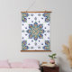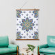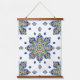 This Tapestry has the print of an original tile design. The colours are blue, green and tan on a cream background. The design is diagonal, and repeats so that each corner shows a fourth of the medallion. This medallion was inspired by the maker's oriental rug. The tile design comes from Oregon Tile maker Fay Jones Day.