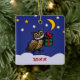Woodcut Owl with a Gift Snowy Night Winter Holiday Ceramic Ornament