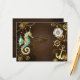 Brown wooden background with sea, mechanical ridge, an antique steering wheel, golden anchor and various gold and brass gears. Steampunk style.