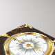 Brown wooden background with sea, mechanical ridge, an antique steering wheel, golden anchor and various gold and brass gears. Steampunk style.
