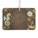 Wooden Background with Mechanical Seahorse Car Air Freshener