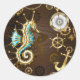 Wooden Background with Mechanical Seahorse Classic Round Sticker