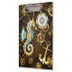 Wooden Background with Mechanical Seahorse Clipboard