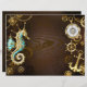 Wooden Background with Mechanical Seahorse Custom Letterhead