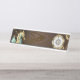 Wooden Background with Mechanical Seahorse Desk Name Plate