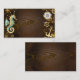 Brown wooden background with sea, mechanical ridge, an antique steering wheel, golden anchor and various gold and brass gears. Steampunk style.