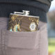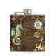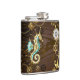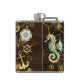 Wooden Background with Mechanical Seahorse Hip Flask