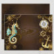 Wooden Background with Mechanical Seahorse Holiday Card