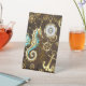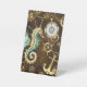 Wooden Background with Mechanical Seahorse Pedestal Sign