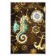 Brown wooden background with sea, mechanical ridge, an antique steering wheel,  golden anchor and various gold and brass gears. Steampunk style.