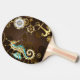 Wooden Background with Mechanical Seahorse Ping Pong Paddle