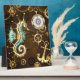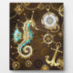 Brown wooden background with sea, mechanical ridge, an antique steering wheel,  golden anchor and various gold and brass gears. Steampunk style.
