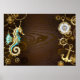 Wooden Background with Mechanical Seahorse Poster