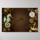 Wooden Background with Mechanical Seahorse Poster