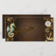 Brown wooden background with sea, mechanical ridge, an antique steering wheel, golden anchor and various gold and brass gears. Steampunk style.