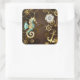 Brown wooden background with sea, mechanical ridge, an antique steering wheel, golden anchor and various gold and brass gears. Steampunk style.