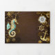 Wooden Background with Mechanical Seahorse Tri-Fold Announcement