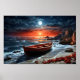 Wooden boat on seashore poster