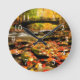 Wooden Bridge and Creek in Fall Round Clock