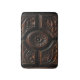 This stunning bath mat is decorated with an image which is so realistic, it looks almost three dimensional. It is a beautiful artistic, rustic wood carving in shades of brown, gold, mahogany and black. A central abstract circular flower image has petals radiating out to a carved circle which is surrounded by four sections. Each section has abstract leaf carvings.