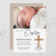 Wooden Cross and Custom Photo Baby Girl Baptism Invitation