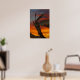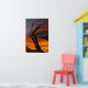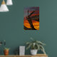 Artistic piece of the sunset in the background, wood in the front that resembles a dragon.