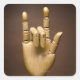 Wooden hand index and small finger extended, square sticker