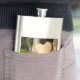 The product is a good size and came exactly as it was pictured. The lid is not attached to the flask, which could be dangerous on drunken nights... The print came out surprisingly well and looks very sharp. Would definitely recommend.