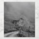 View of a small, wooden, traditional house, mountain path, grass field in fog. The image is captured in Trabzon/Rize area of Black Sea region located at northeast of Turkey. Nature, travel concept. Beautiful scene.