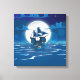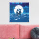 Wooden Sail ship voyage in the moonlight Canvas Print