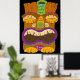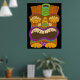Wooden Tiki Statue with Open Mouth, Funny Black Poster