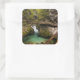 Square photo sticker with the wooden walkway over motion blurred water through the narrow Vintgar Gorge canyon carved into the mountains around Lake Bled in Slovenia.