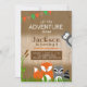 This woodsy birthday party invitation features three adorable animals, owl, fox and racoon on a wood background. This is a cute birthday party invitation for any age child.