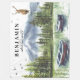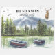 Woodland adventure awaits forest mountain theme with canoes and a buck on top of the mountain. Add custom name or recipient's name to add a personal touch.