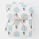Woodland animal and hot air balloon wrapping paper sheets featuring light blue hot air balloons carrying a cute fox, racoon, and bear.