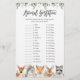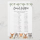 Woodland animals themed baby shower animal gestation game card features a watercolor woodland animals illustration and watercolor greenery eucalyptus garland and elegant handwritten style font.