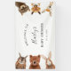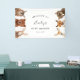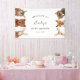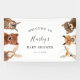 Whimsical woodland theme baby shower welcome banner featuring illustration of a racoon, fox, deer, owl, bear, and a rabbit. Gender neutral design.