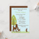Simply sweet baby shower invites or new baby birth or adoption announcement features a beautiful vector illustration a baby deer and his mummy on a sweet forest scene surrounded by trees and cute bunny holding a flower.
