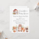 "Things Are About To get Wild", cute woodland forest animals, fox, bear, and bunny rabbit, await your guests as they receive this baby shower invitation.
