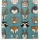 seamless, pattern, animal, woodland, fall, winter, fun, owl, hedgehog, kids, illustration, woods, cute, fox, modern, decor, nature, doodle, face, blue