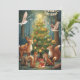 This is a flat holiday card. The back is blank. The front is an AI-generated image of woodland animals celebrating the holidays around a decorated tree. In the corner is a banner wishing "Happy New Year."