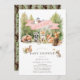 This cute girl's baby shower invitation features woodland animals, such as a fox, raccoon, hedgehog, squirrel, mouse, deer, bunny and bear in a forest. The reverse side features a green background with trees and bears. Personalize it for your needs. You can find matching products at my store.