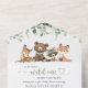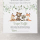 Invite friends and family in style and set the tone for your special day with this charming baby shower invitation. Design features forest animals (bear, fox, racoon, fawn) and greenery on white background.