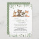 Invite friends and family in style and set the tone for your special day with this charming baby shower invitation. Design features forest animals (bear, fox, racoon, fawn) and greenery on white background.