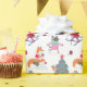 Cute Christmas wrapping paper with a festive pattern of woodland animals. There's Little Deer peeking round the Christmas Tree, Master Fox building a pile of snow balls, Mr Wolf skiing and Miss Kitty ice skating. The woodland animals are having great fun in this winter scene, which is complete with little robins. The design is on a white background which you can customize if you wish. Please browse our store for coordinating Christmas gifts and decor.