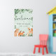 This welcome sign features a cute woodland animals design with modern hand-lettered welcome heading. The sign can be customised to suit any event.