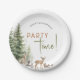 Celebrate your little one's special day with our woodland animals party time birthday paper plates, perfect for a cute and whimsical occasion! It features a modern watercolor forest theme with adorable creatures like a fox, brown bear, bunny, and deer. This bohemian design sets a sweet and simple scene with its natural landscape of green trees and a classic owl. Ideal for celebrating a boy or girl, this design is as charming as it is timeless. Please feel free to ask any questions regarding the product's design; we are happy to help!